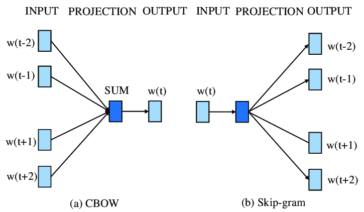 | Skip-Gram | “I see the word (‘sat’), can I guess the context (‘the’, ‘cat’, ‘on’, ‘mat’)?” | Target → Context |